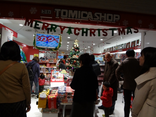 東京キャラクターストリートには各テレビ局やキャラクターの店があり、この店ではトミカのミニカーに関連するグッズが売られています。大人も童心に帰って楽しめますよ。店内は大変混み合っています。