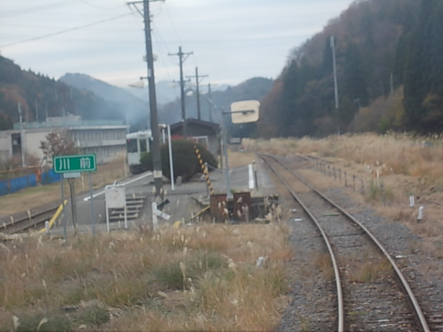この駅は島式ホームを有していて、列車交換もよく行われている駅ですが、特に遠くから眺めると、駅舎とホームとの距離感がとても心地良く感じられる駅でした。車両の後部から眺める駅の全景がなかなか風情ありますので、是非注目してみて下さい。