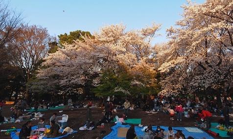 王子から公園に上る階段は長蛇の列。公園内は既にシートでいっぱい。