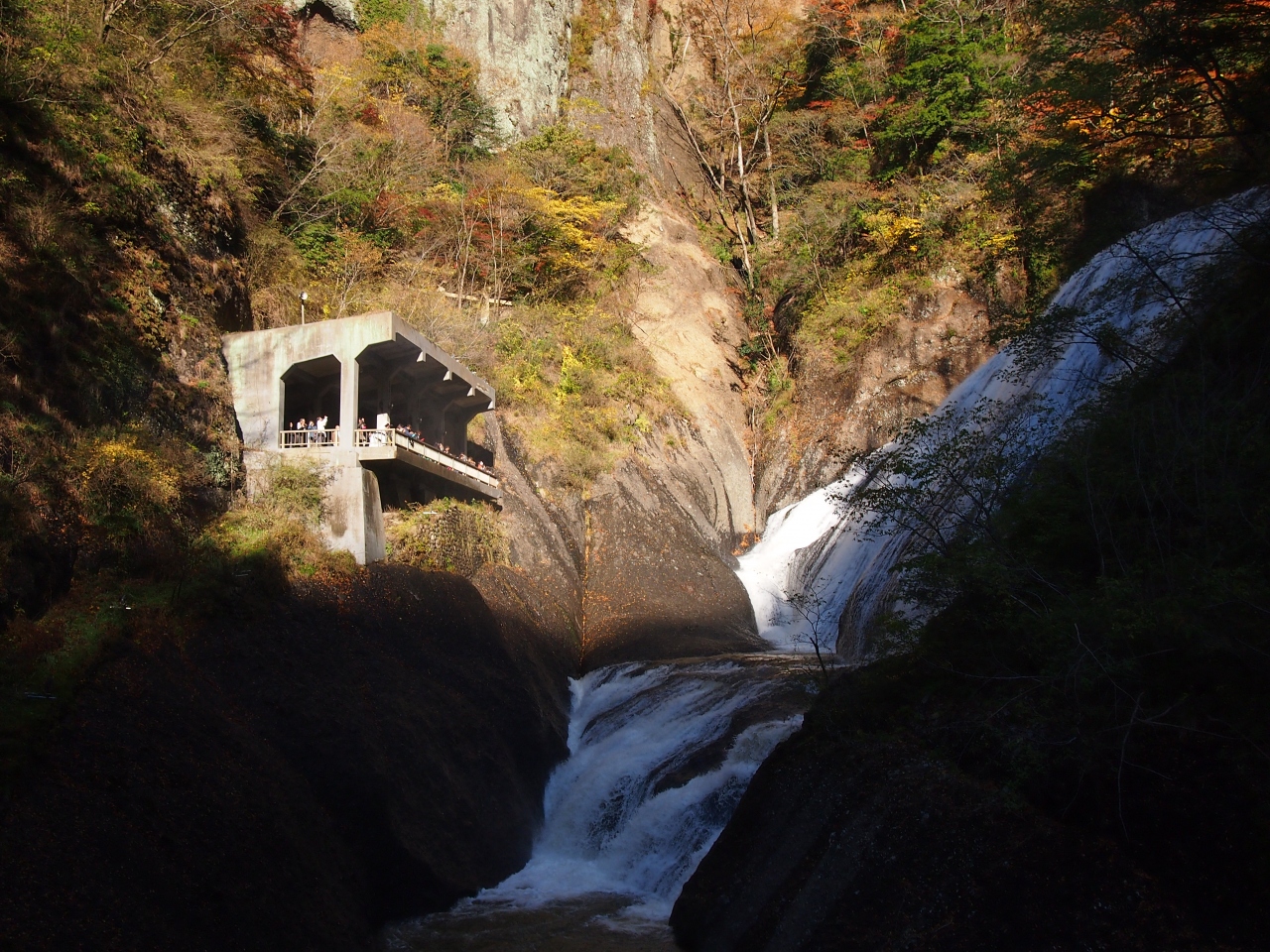 駐車場からも結構歩いた先にある、入り口でチケットを買った後は、約300mの整備されたトンネルを抜けます。 途中に展望台があり、もう少し時間があれば良かったけど、急げ急げで進まないといけなかったのがとっても残念っ! エレベーターに乗って、滝を上から見下ろす(四度の滝の4つの部分が全て見れる)第二観瀑台は、あまりの大行列で行く事も出来ませんでした…。 次に行く機会があればぜひ行きたいです。