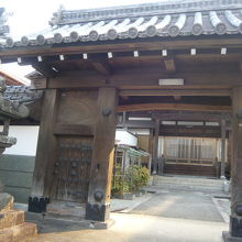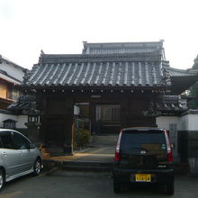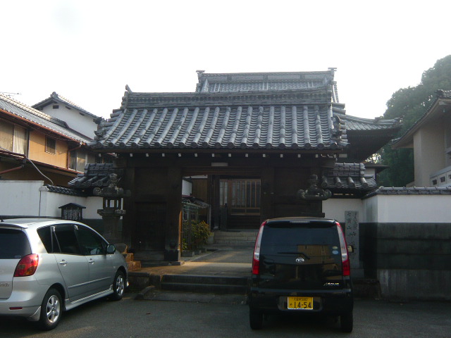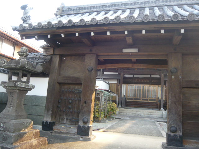 両側に石塔の置かれた山門の瓦屋根は横長の形をしています。山門の正面には本堂、隣は庫裏。本堂の右脇には小道があり、裏手の墓地へ通じており、墓地には久留米洋画壇の草分けの森三美の墓碑もありました。