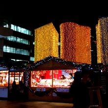 梅田スカイビルのクリスマスマーケットも今年で20年の節目とのこと。例年にまして華やかな飾り付けが施されています。その多くはドイツからコンテナで輸送されて来た本物で、何と設営している人達もドイツから飛んで来たドイツ人でした。