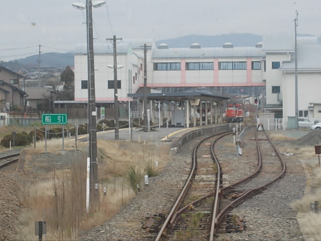 船引駅は磐越東線上でも大きな駅の一つですが、町村合併で数年前に誕生した田村市の中でも一番大きな旧船引町の中心駅として存在感のある駅です。駅舎も大きいのですが、それ以上にホーム上で出迎えてくれる魔除けのお人形がインパクトありますので、是非、ホームにもご注目下さい。