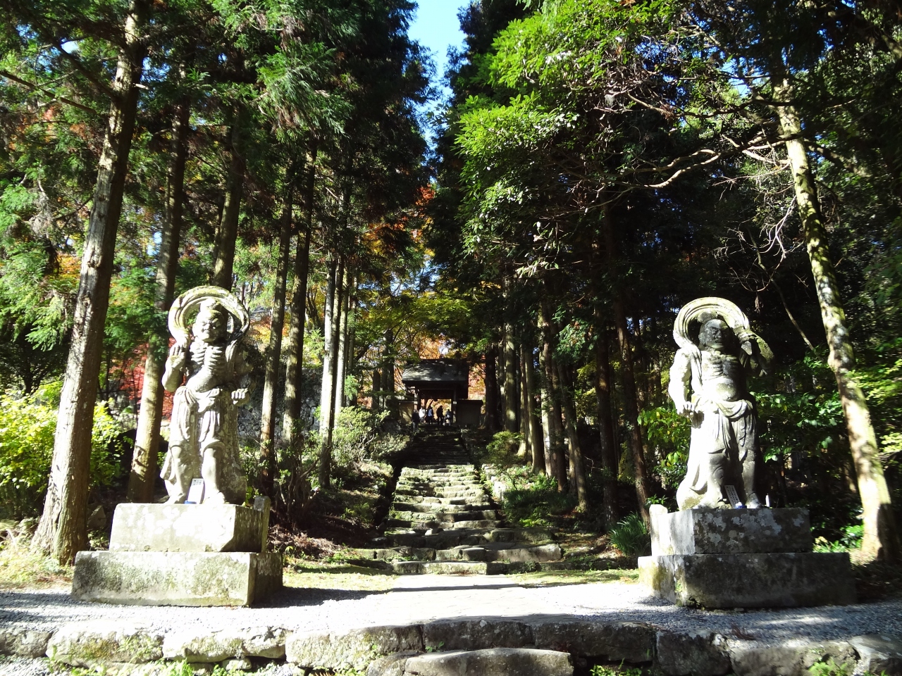 石造仁王像は参道の入り口にあるので、車で来た場合は駐車場を挟んで反対側に参道を下っていくことになります。参道も紅葉が絵になる美しさでした。