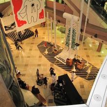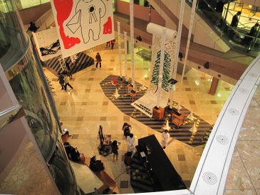 他のビルに見られるようなビルの外に大きな飾りはありません。それでビルの中に入りますとこちらのビルはビルの中央が空間になっており丁度バームクーヘンのような形です。