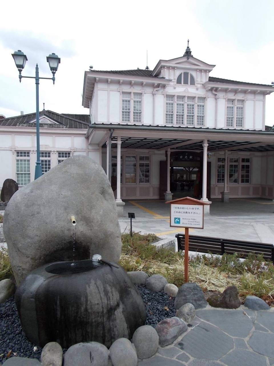 駅の前に 日光の美味しい水の水飲み場もありました。