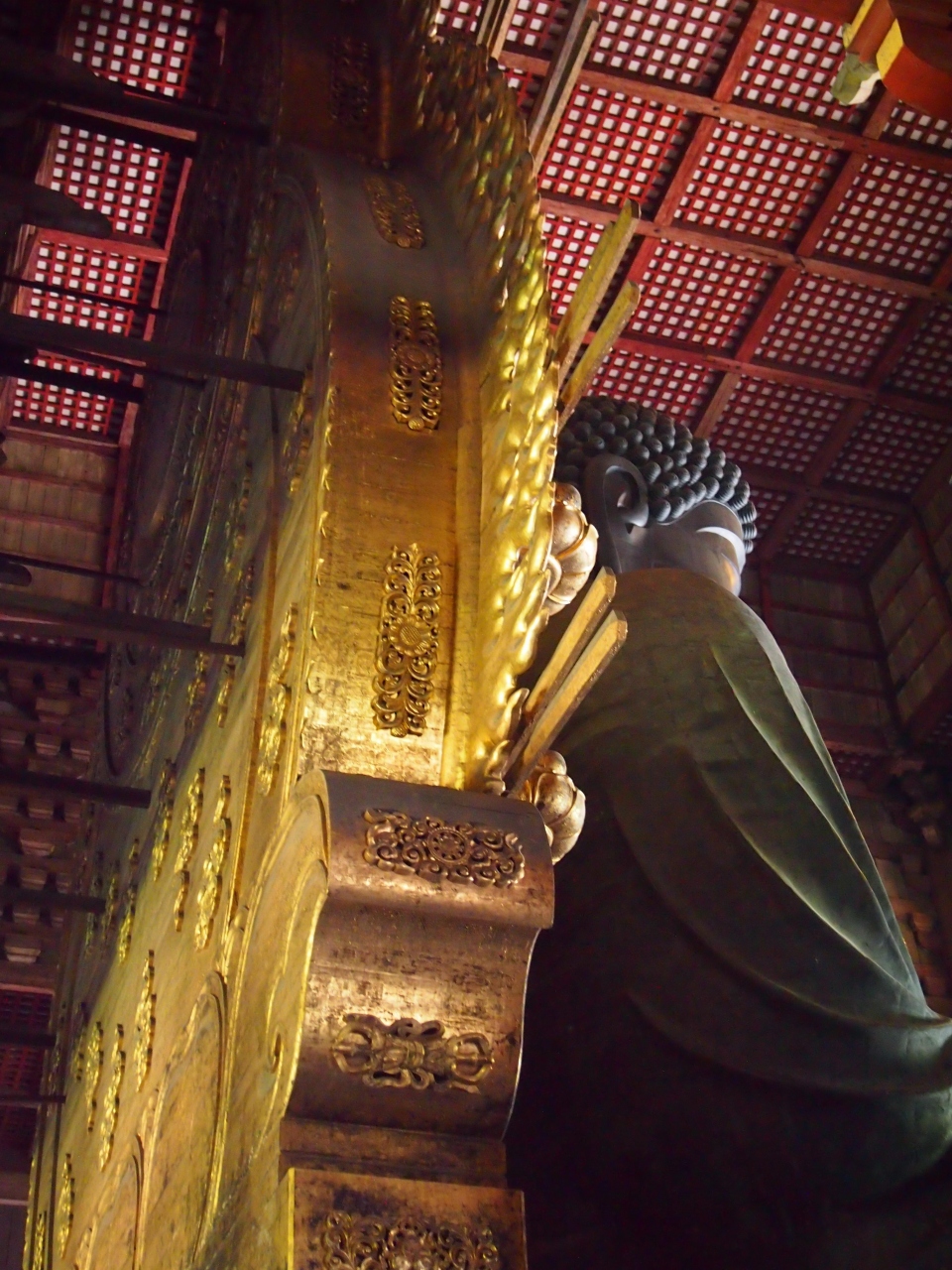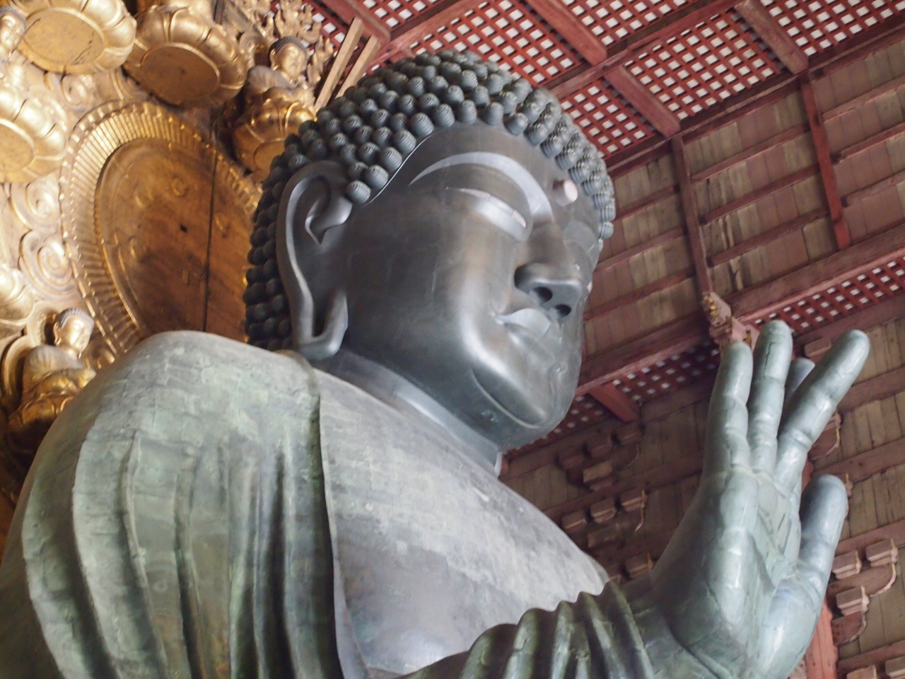 大仏殿は火事で2度ほど焼けてしまっているので、現在の建物は、江戸時代に建ったものとのことですが、それでも木造建造物としては世界一の規模を誇っている、本当に大きな建物です。 中に鎮座している大仏様も、見上げてその大きさに驚くばかり!! 大仏殿の中は、大仏の周りをぐるりと1周出来るので、後ろ姿なども見ることが出来ます。 昔、修学旅行で行った際は、ぐるりと1周した覚えはなかったので、大人になってもう1度行ってみて、なかなか新鮮でした。
