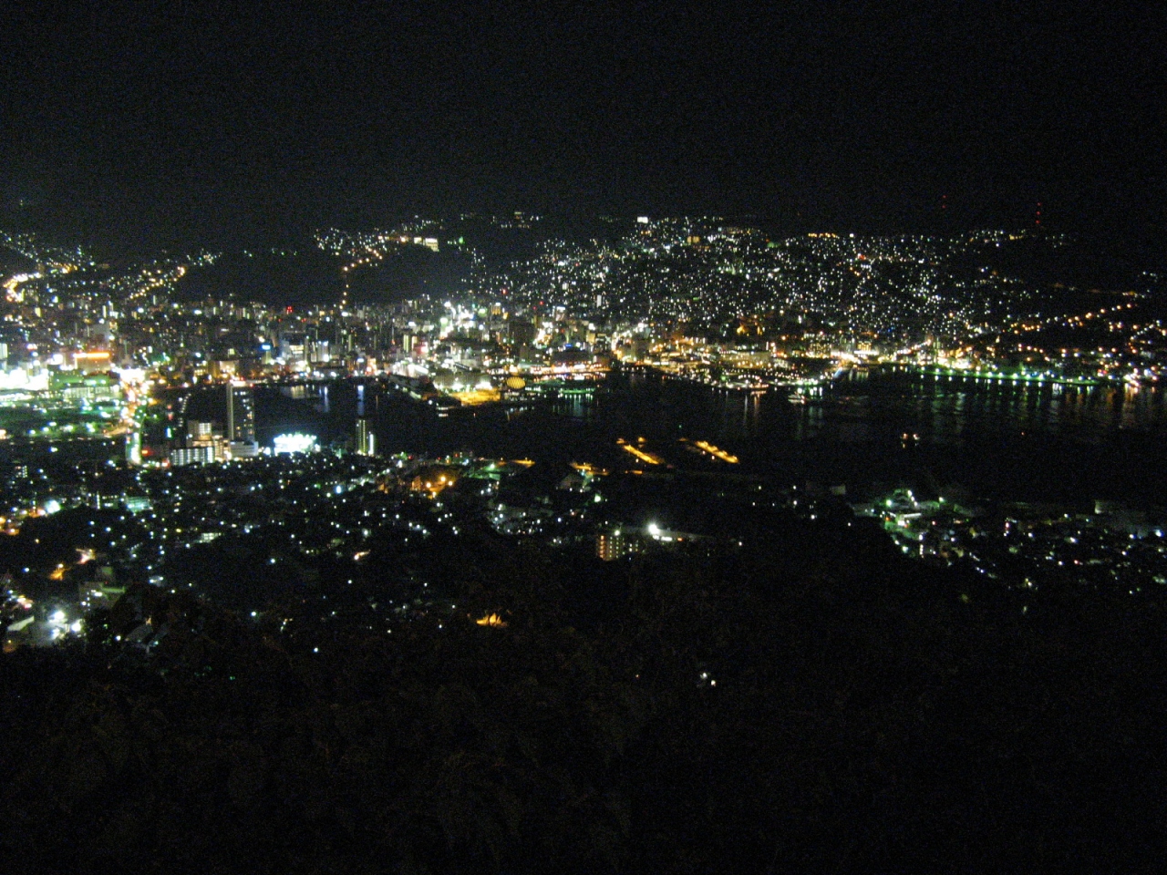 函館、神戸と並んで日本3大夜景のひとつと称される長崎の夜景を見るために「稲佐山」に行きました。稲佐山に登るには、麓からロープーウェイかタクシーもしくは車ということになります。訪れたときは日曜だったためか、頂上の駐車場は一杯でウロウロする始末。展望台から見る夜景は大変よかったが、神戸、函館に比べるとちよつとスケールが小さいように感じました。夜景を見るのなら、日没少し前に登って、暮れ行く長崎の夜景を時間をかけて見るのがよいと思いました。