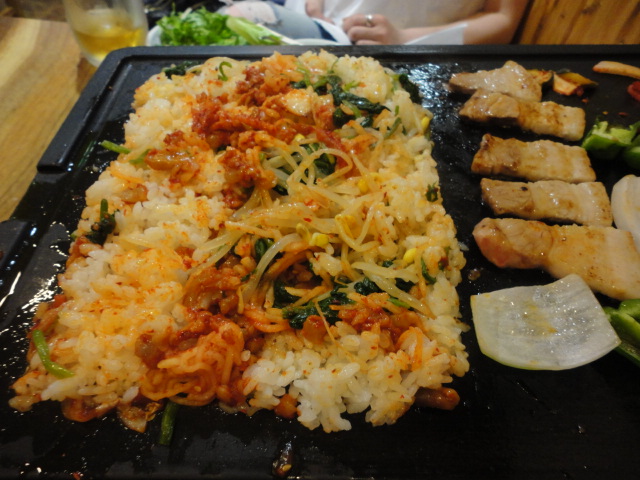 飲食店の並ぶビル路地の中の階段をのぼると、