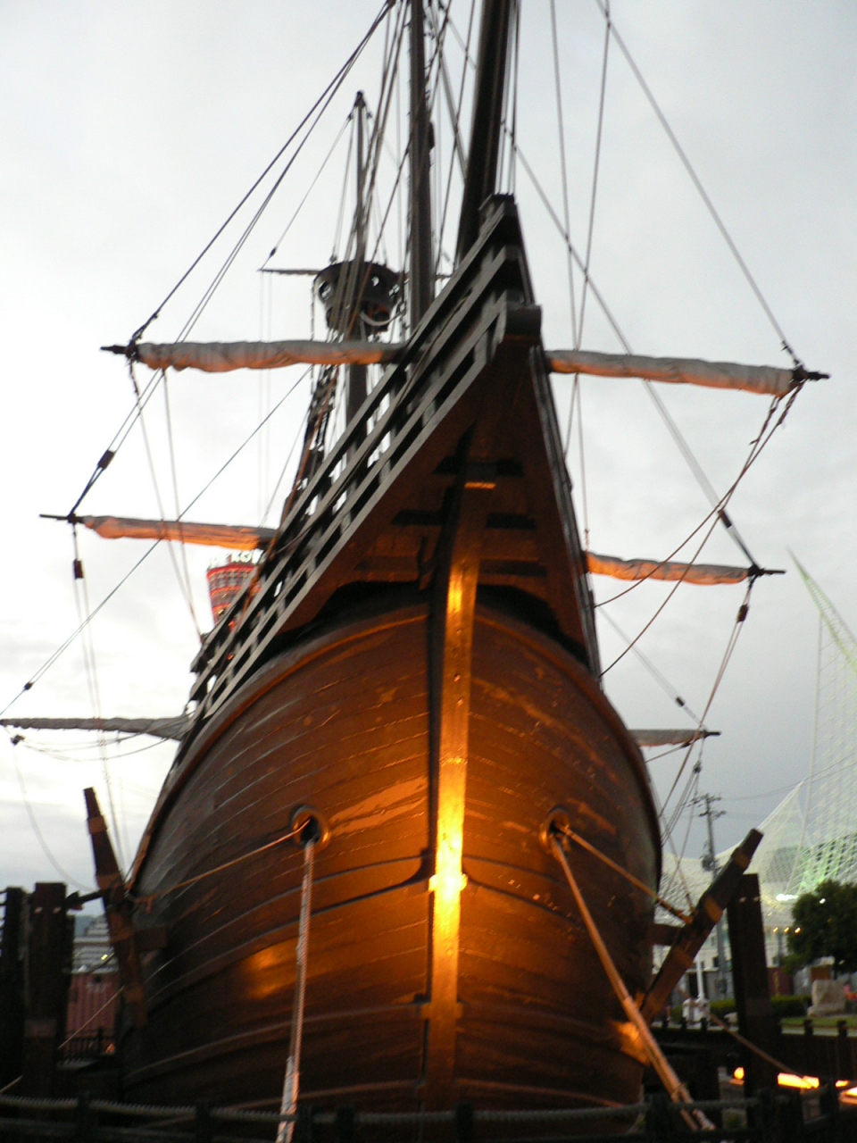 前身は1962年に開館した神戸国際港湾博物館で海事博物館としては世界有数の規模で、1987年に神戸港開港120年を記念して開館し波、帆船の帆をイメージさせる独特な外観の屋上構造物は白色のフレームで六甲山の緑色、神戸ポートタワーの赤色との対比が美しい。夜間は青系の光でライトアップされ屋外展示物に帆船 「サンタマリア」(復元・実物大)などがある。