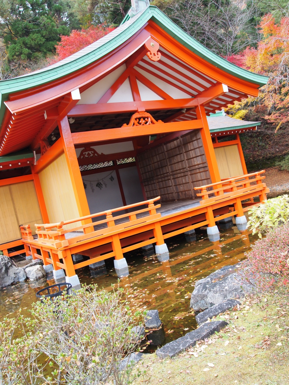 紅葉が綺麗らしいので行ってきました。ここまでの道は大変狭い道ですれ違うことが出来ないほどの車幅なので運転に自信が無い方は行かない方が良いです。この下に駐車場がありますが坂を上った上にも駐車場があるので注意! 入場料は大人400円で巻物になった地図をもらえます。高台に平家についての資料館や舞台があり紅葉との相性は見事でした! 紅葉のシーズンが絶対におススメです!