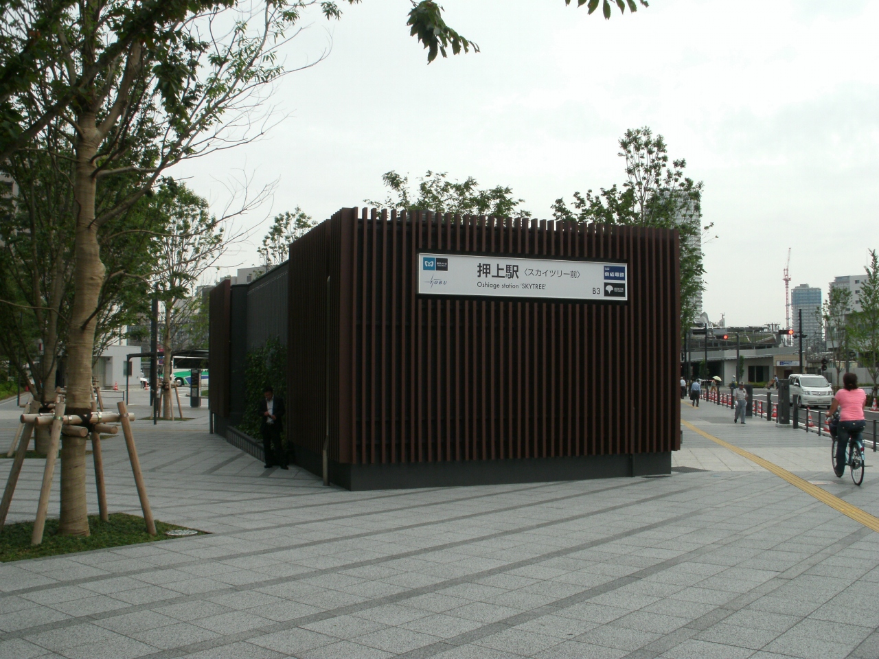 東京スカイツリーには、東武のスカイツリー駅がその名の通りですが、メトロ、都営、京成の押上駅もスカイツリーに隣接しています。とくにスカイツリーの真下にできた新しい出口はかなり便利。バリアフリーにも完全対応です。