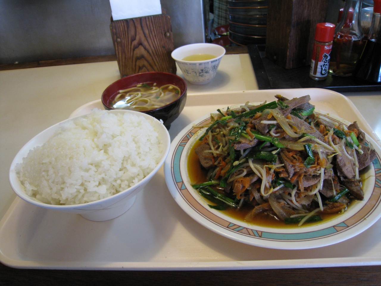 那覇空港に昼過ぎに着いたので、昼飯にとこちらに寄りました。ゆいレール・旭橋駅からダラダラ歩いて10分弱で着きました。カウンターに座り、平日2時過ぎですが、お客さんは6分の入りという賑わいです。ゴーヤチャンプルーを頼むと売り切れということでレバニラ定食を頼みました。量が多いとは知っていましたが、想像以上でした。前のお客さんがご飯小盛りと頼むのをまねすればよかった。レバニラも本州サイズの2倍はある感じで、味も美味しかったです。目の前ではあの肉そばの盛り付けをしていましたが、これ以上のらないというくらい、押し付ける感じで丼に野菜炒めを盛り付けていました。圧巻!沖縄ならではの定食屋さんという感じでまた来てみたいです。