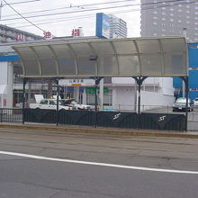 中島公園から近いところにある電停で、東に歩くと地下鉄の中島公園駅に出ます。周辺は住宅地域で、とくにマンションが目立っているところですが、札幌エクセルホテル東急、チサングランド札幌などのホテルも近くにあります。