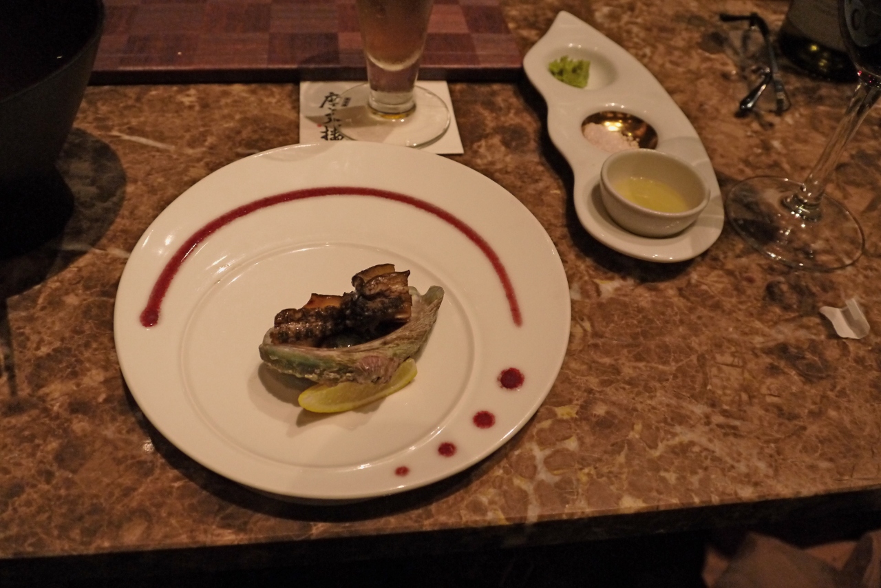 ソラマチ31階の「摩天楼」というお店.鮑だの伊勢エビ,ステーキなど日本人が好きなフルコース.カウンターで見ているのはとても楽しかった.ステーキは一応水準だったが,鮑と伊勢海老は私はいま一つ.やきうにはおいしかったが,一番おいしかったのはデザートの氷ツリー.瀬戸内海大三島の伊勢エビや,ノルウエーのエビなどを食べてしまったわたしには少し物足りなかった.9800円と格安.目の前で焼いてくれるのも楽しい.ぜんたいとしてはおすすめのみせ.