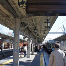 嵐山に行くには、阪急電車か京福電鉄のどちらかを利用することになります。景勝地のお寺などは京福電鉄の方が近くて便利ですが、阪急嵐山駅始発で各種バスが出ていますので、バス利用なら断然阪急をお勧めします。紅葉の時期には、ここから「西山高雄」方面への臨時バスも運行され、大盛況です。