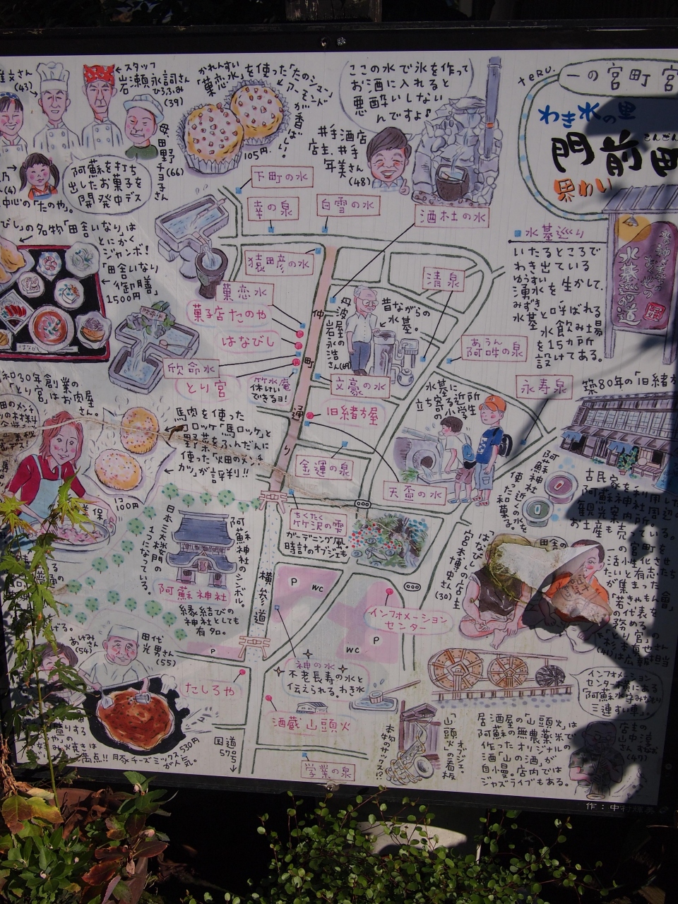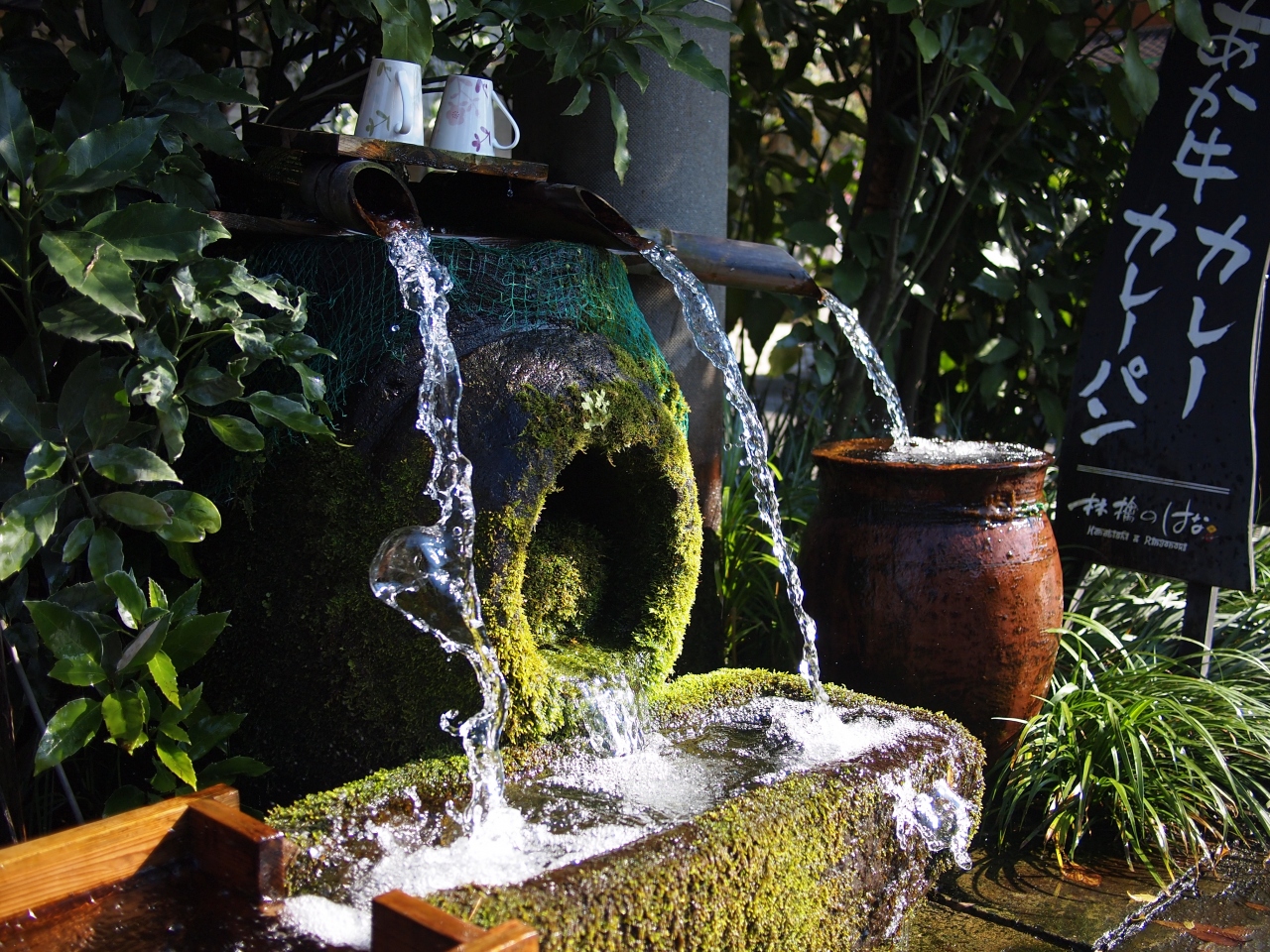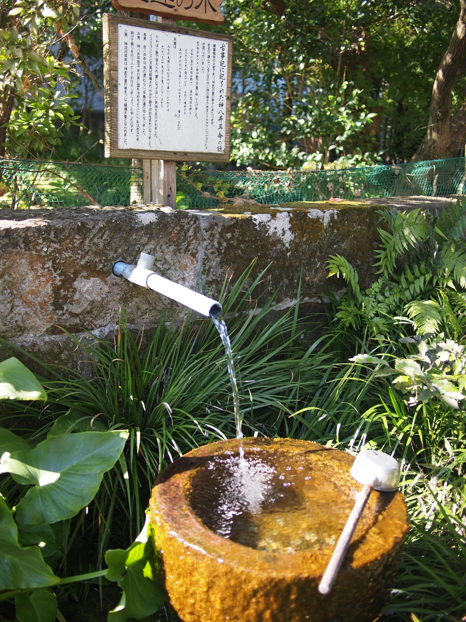 阿蘇神社の門前町の至る所にある湧き水の水基。