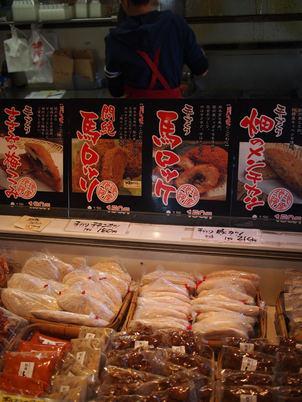 門前町にある肉屋「とり宮」で馬ロッケ(馬肉の入ったコロッケ)を食べましたが、店内の飲食用スペースにも水基がありました。
