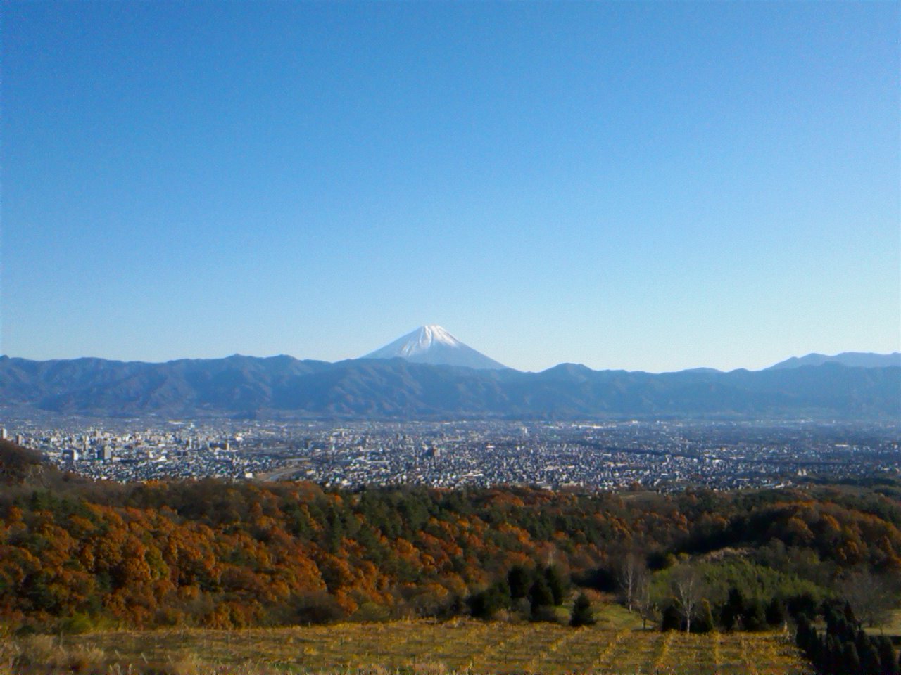 また、山頂のレストランから見た甲府盆地と富士山の眺めは最高に綺麗でした。