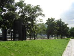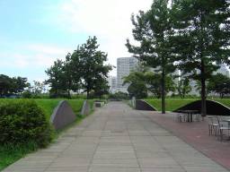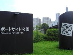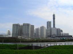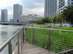 帷子川と新田間川が合流し横浜港に注ぐ河口沿いに運河に対し張り出したような設計のデッキが何本も設けられています。
