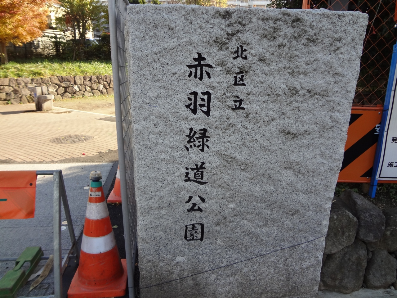 廃線となった軍用貨物の線路跡を利用して作られた公園で、赤羽保健所通りに架かる橋の欄干には、線路にちなんで車輪のデザインがほどこされています。