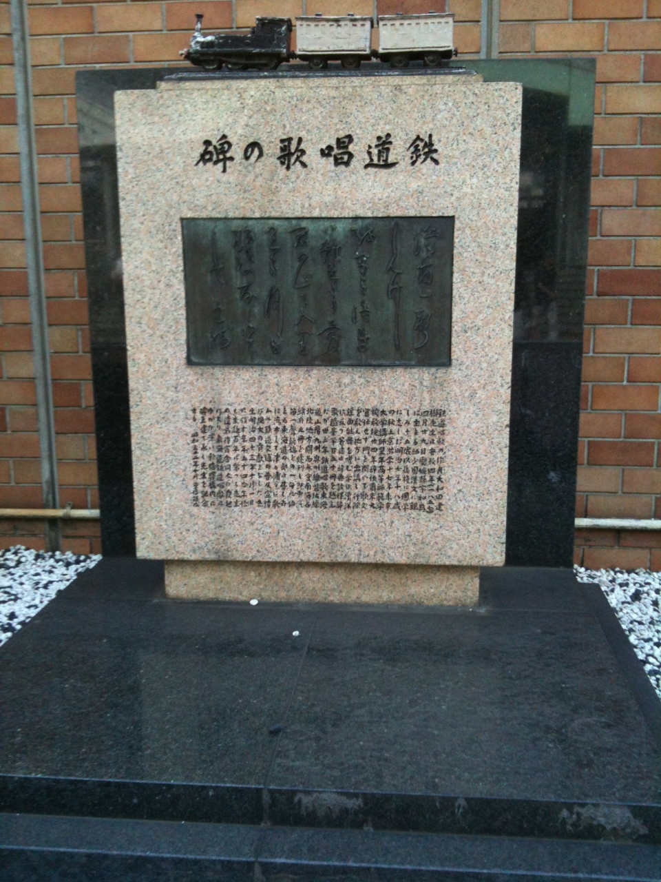 「鉄道唱歌」は1900年に発表されてから、1987年まで日本一歌詞が長い歌として有名でした。「鉄道唱歌の牌」は新橋駅烏森口のゆりかもめ側にSLの車輪と並んで建っていました。東京の西の玄関口としてスタートした新橋駅にぴったりです。