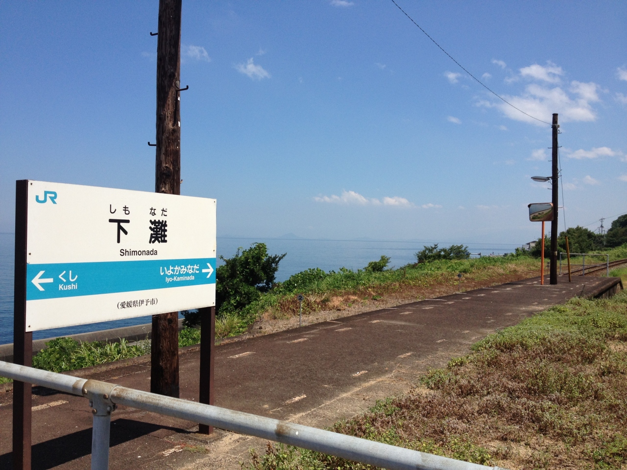 「下灘駅」の看板が見え左折するとそこからは道が急にせまくなります。