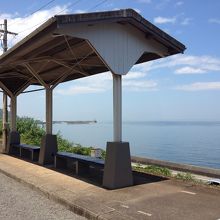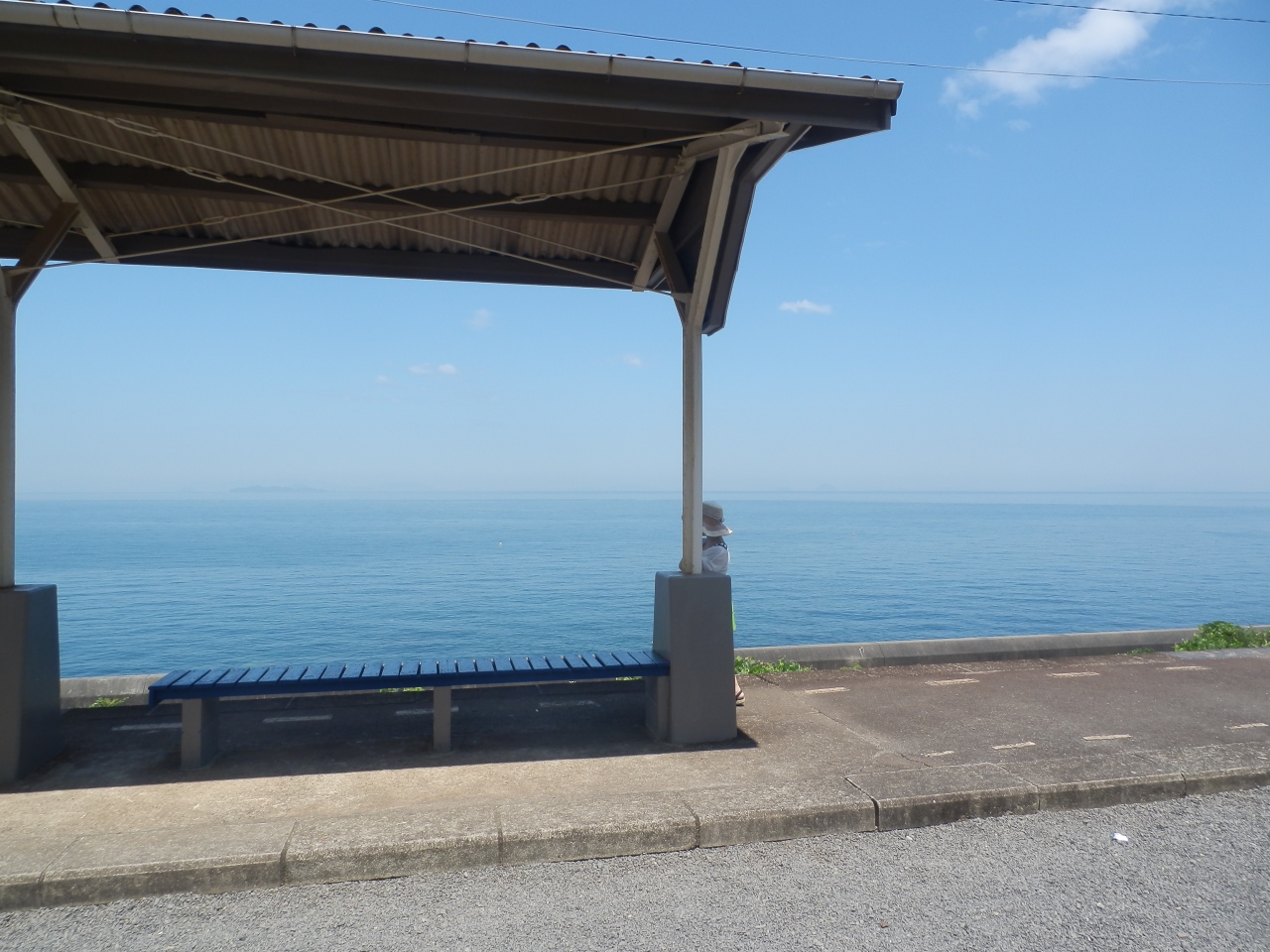 ず~と右は海、左はJRの線路が並走している のどかな風景が続きます。