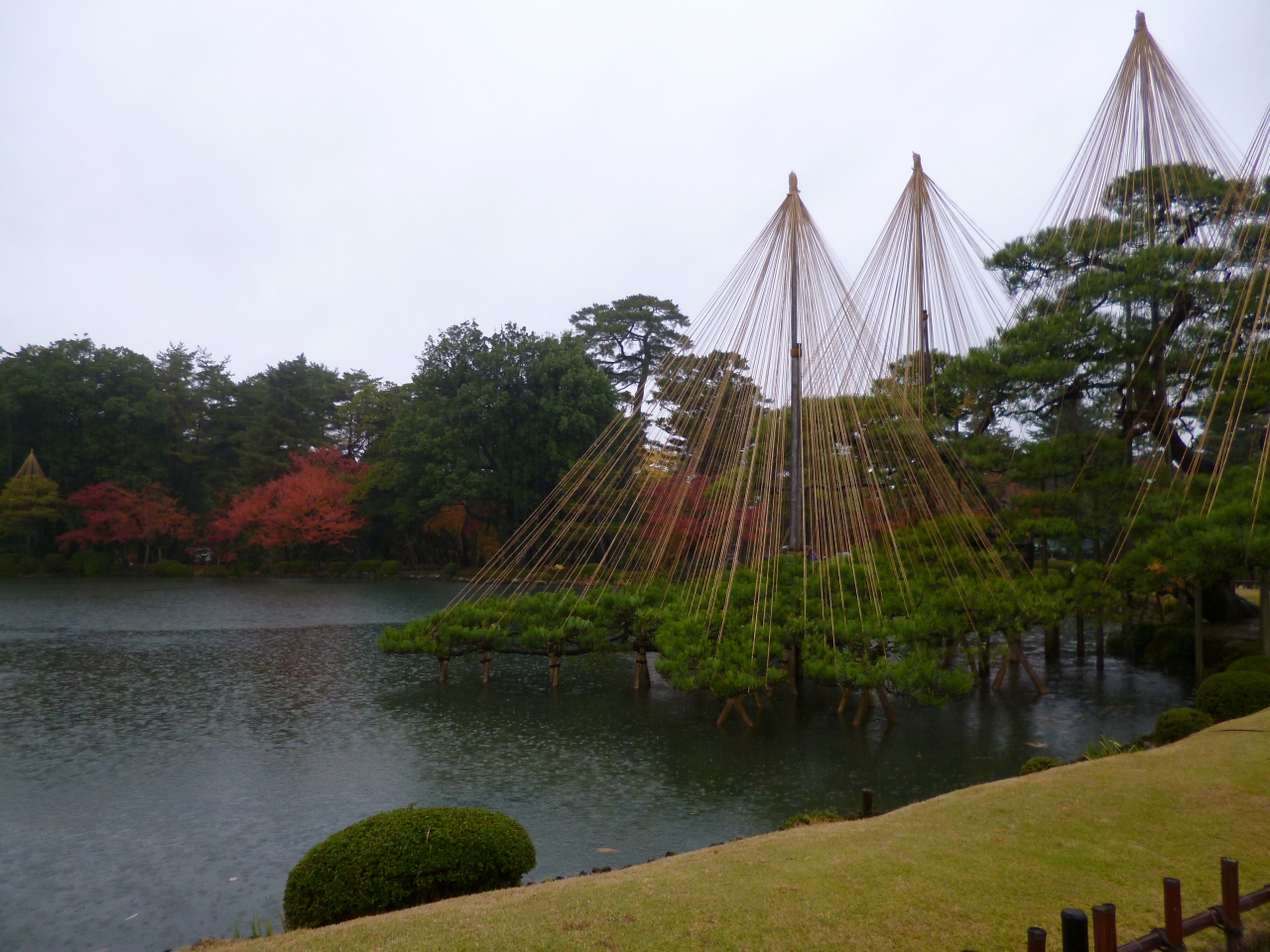 兼六園の冬の風物詩です。大きな木から小さな木まで、雪吊りがしてありました。特に大きな木は迫力があってよかったです。秋だったので、まだ雪は降っていませんでしたが、是非雪が積もった姿を見たいと思いました。