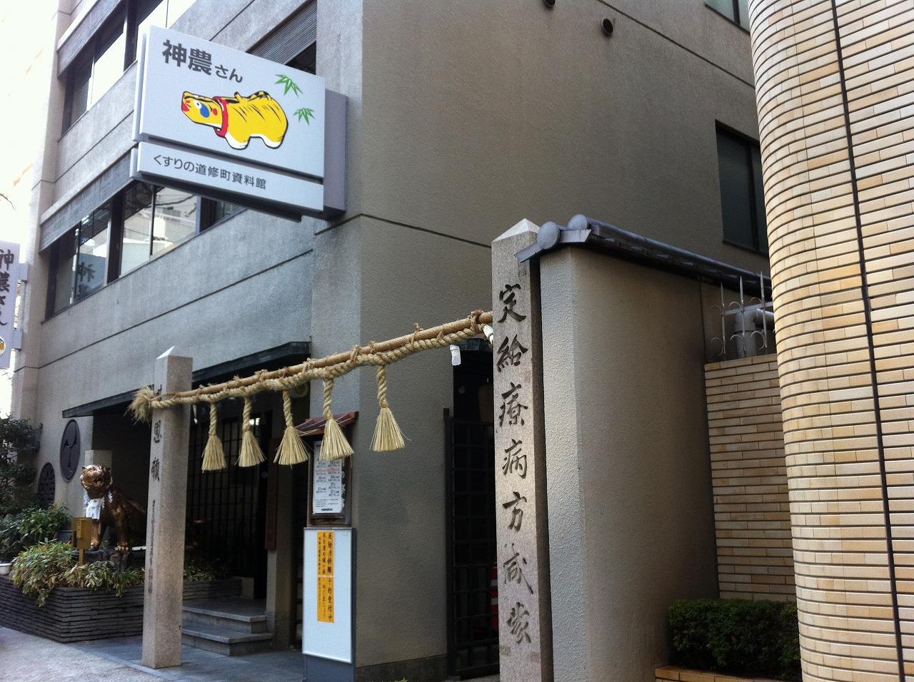 製薬メーカーが並ぶ道修通りに面している。日本の薬祖神、少彦名と、中国の薬の神様、神農さんをお祀りしているのだそうだ。短い参道の奥に本殿。狭いけれどほっとするエリア。