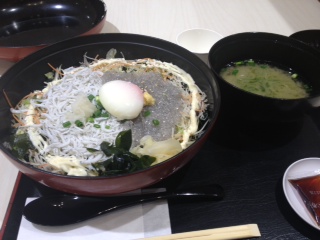 写真は 生シラスと釜揚げしらすの2色丼です。