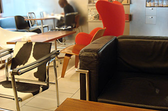 私はマシュマロチェア(byジョージネルソン)とLC3(byコルビジェ)のソファ席へ。