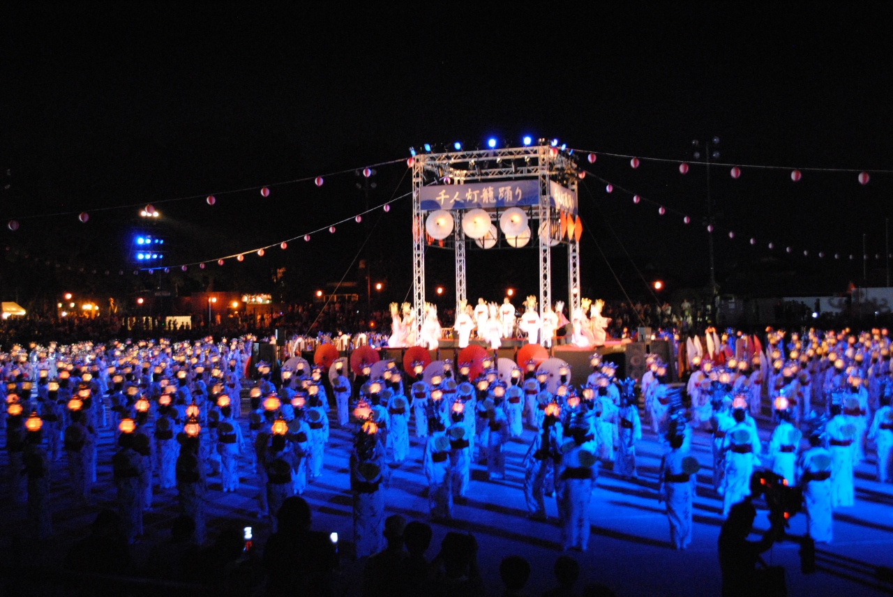 祭りのメインは、やはり千人灯籠ですが、無料観覧席もありますが、3000円の有料観覧席でゆっくりと見ました。