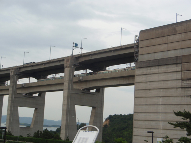 瀬戸大橋を渡る電車を見せるのも観光資源の様です。