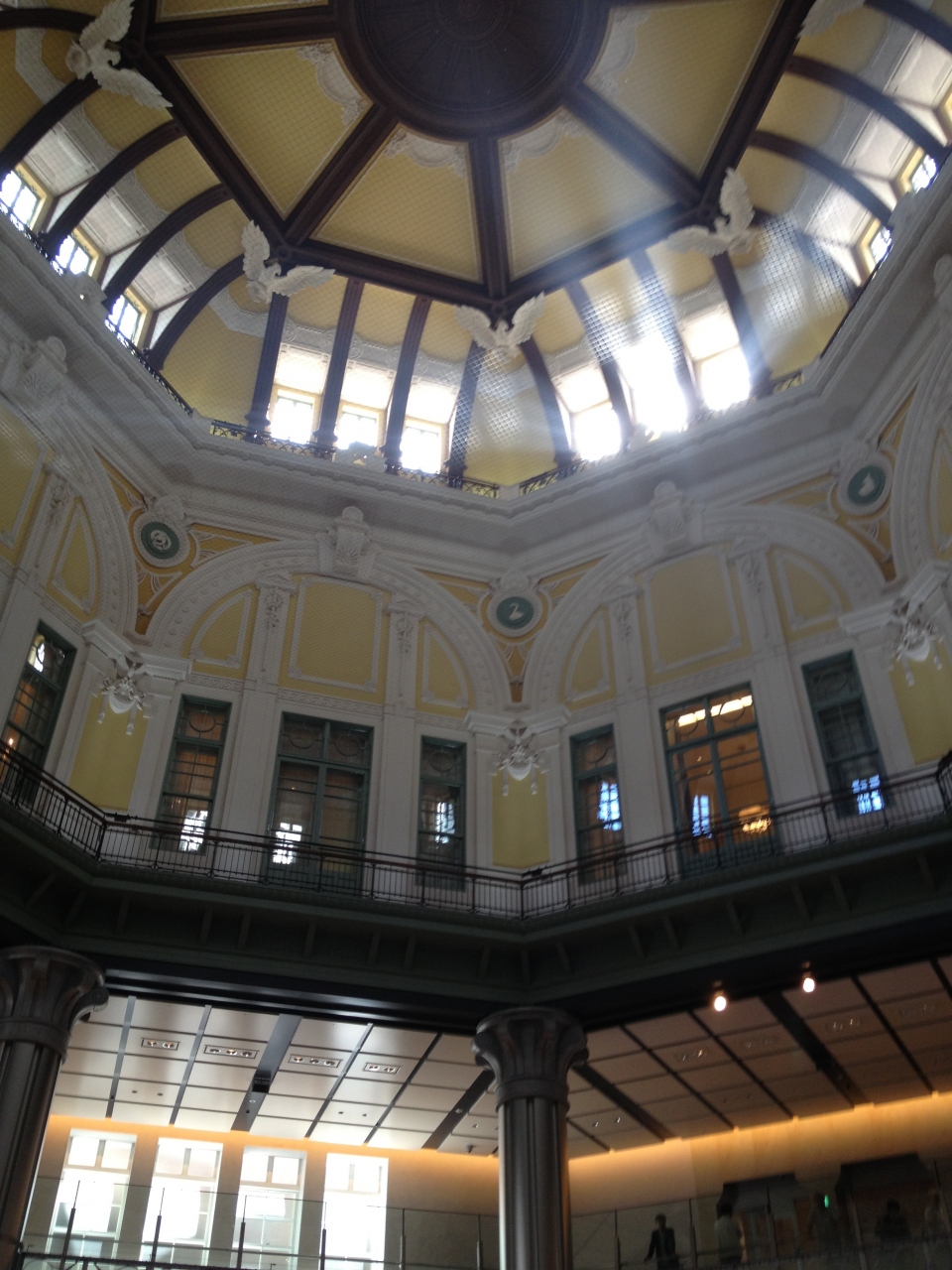 東京駅赤レンガ駅舎 (とうきょうえきあかれんがえきしゃ)の内部です。新駅舎内は、採光が採れていて、とても明るい雰囲気の良い駅舎内です。とても多くの人で 駅舎内は、ざわついていますが、採光が取れているので見ているだけで気分がいいです。