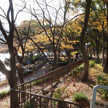 公園内には木々が植えられそのあいだには遊歩道がつくられて、