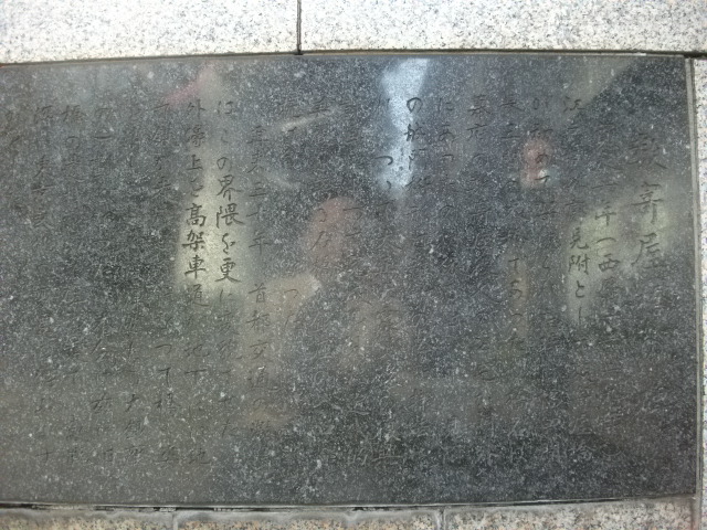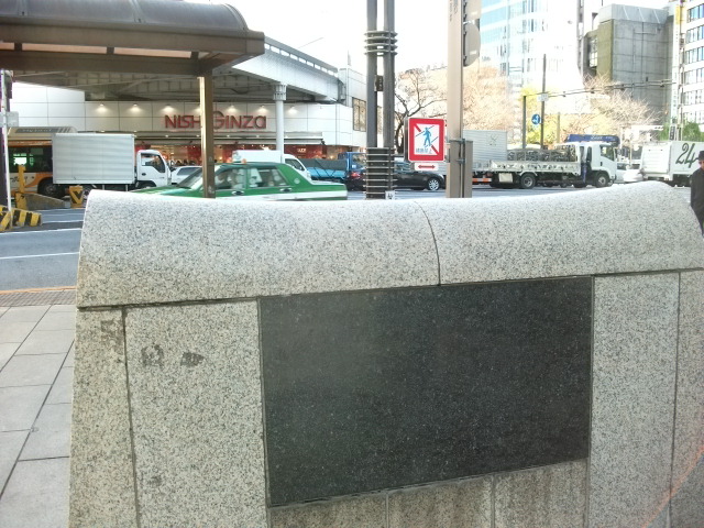 数寄屋橋公園内にあります。 通りに面したところにあるのですが、碑文が良く見えません。 ほとんどの人は読めないと思います。
