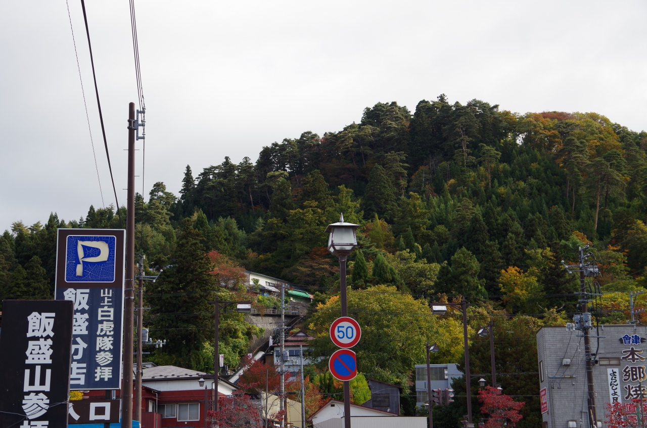 白虎隊記念館の前の道を通っていくのですが、緩い坂を登りますが長い階段を上るよりは確かに楽だと思います。