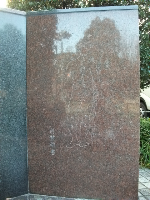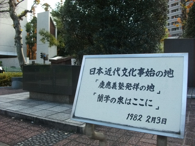 聖路加病院から通りを挟んだところにあります。 慶應大学の碑といっしょになっています。 一応ターヘルアナトミアの碑もあるので、蘭学のことかということもわかるようになってはいます。