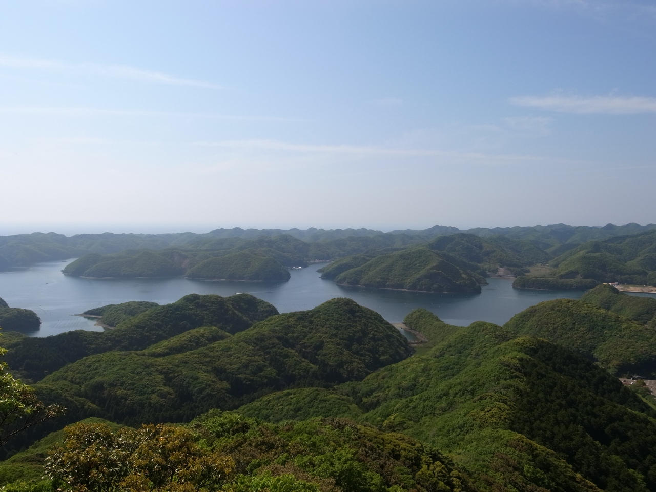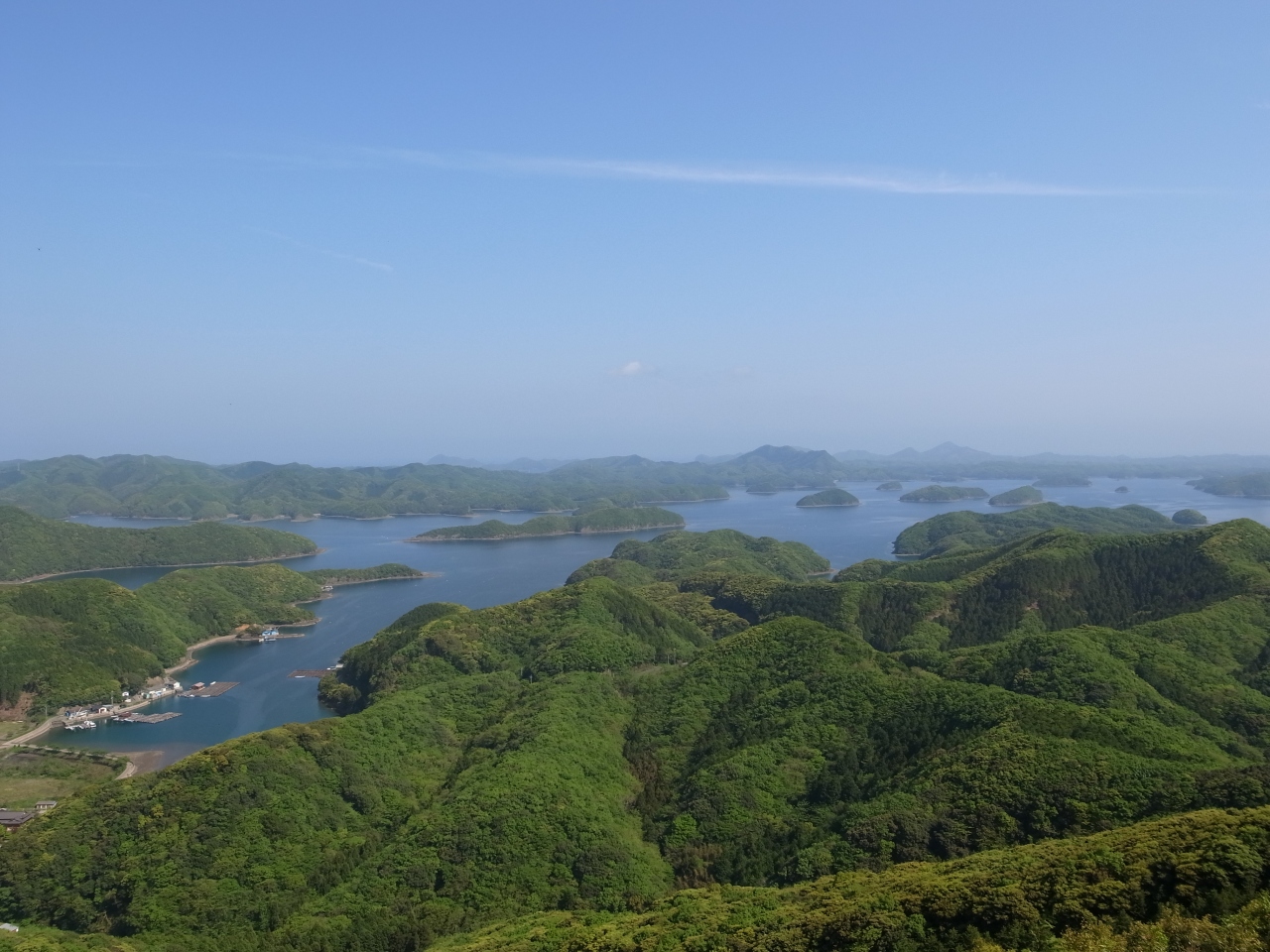 和多都美神社を見学した後、タクシーで烏帽子岳に案内していただき、展望台から浅茅(あそう)湾の景色を見ました。本当に360度の眺望が広がり、リアス式海岸の美しい浅茅湾や対馬の美しい緑の山々を見ることが出来ました。日本や韓国の観光客も多く、とても賑わう見所の1つでした。