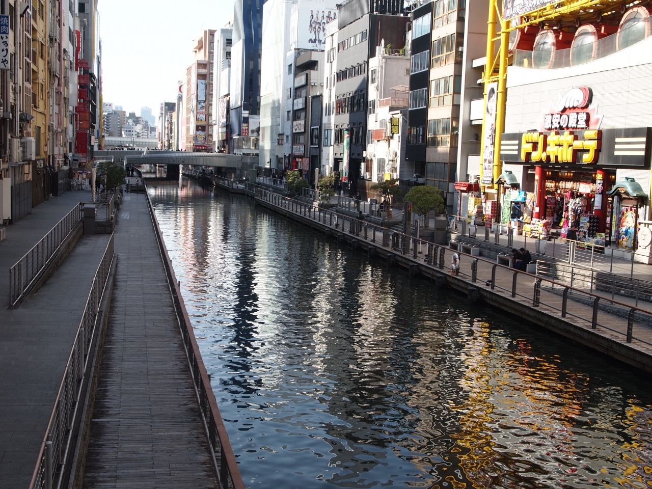 道頓堀の岸辺の一段下がった場所に遊歩道があります。