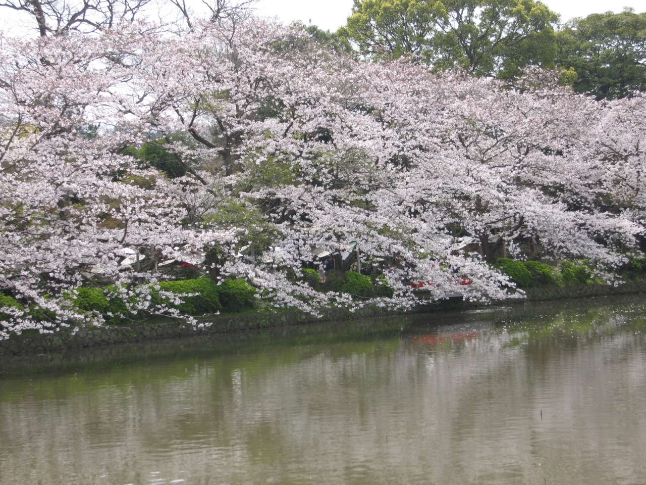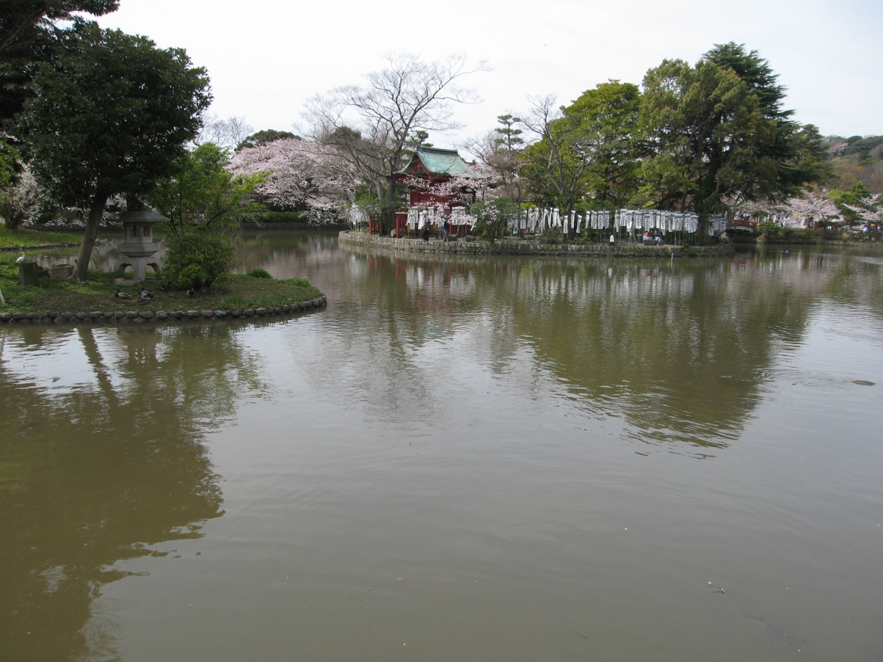 源平池で一休み、桜