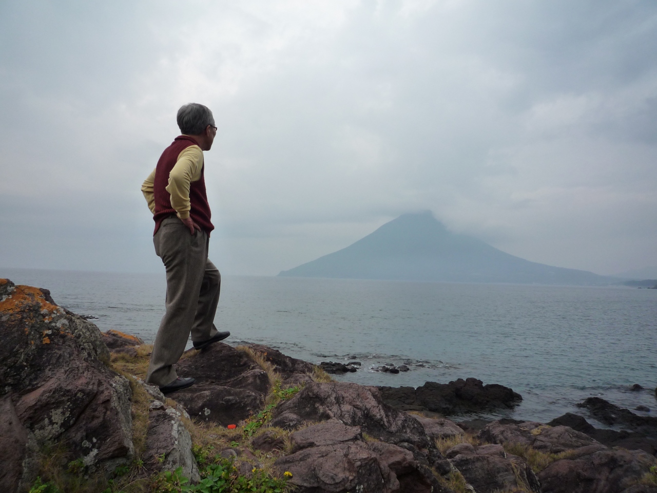 開聞岳を眺めながら長崎鼻へ。海岸線と開門の雄姿が一緒に見えるのが素晴らしい。しかし駐車場から長崎鼻公園への道中の通路には閉口する。私の記憶する50年前の姿そのままで、みすぼらしい(失礼!)お土産屋さんが並んでいる。なんとかこぎれいにリフォームしてほしいものだと。