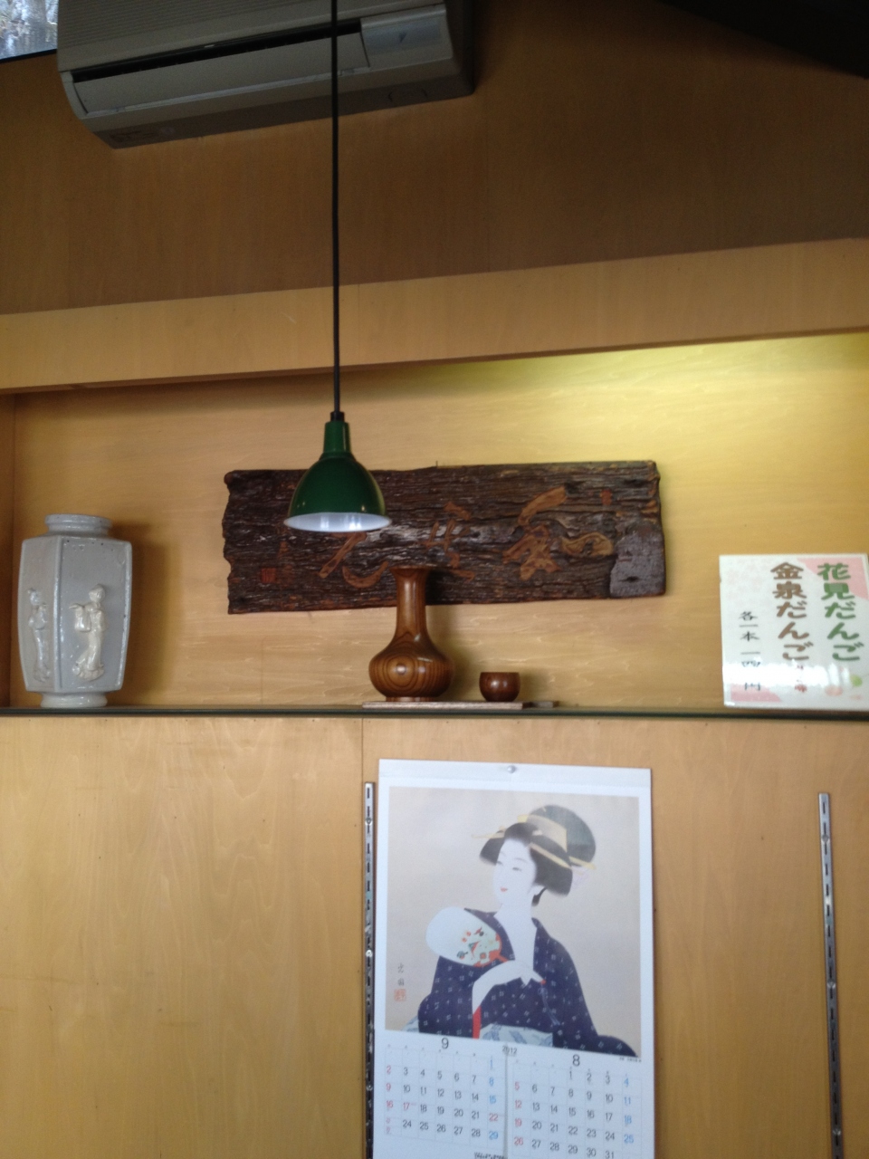 三ツ森 (ミツモリ)では、炭酸煎餅の他に、金泉だんごや、花見だんごがおすすめです、店内の看板も古めかしくて一見の価値が有ります。この看板やカレンダー等で歴史を感じる事ができます。ぜひ、一度、だんご屋さんにいってみてください。