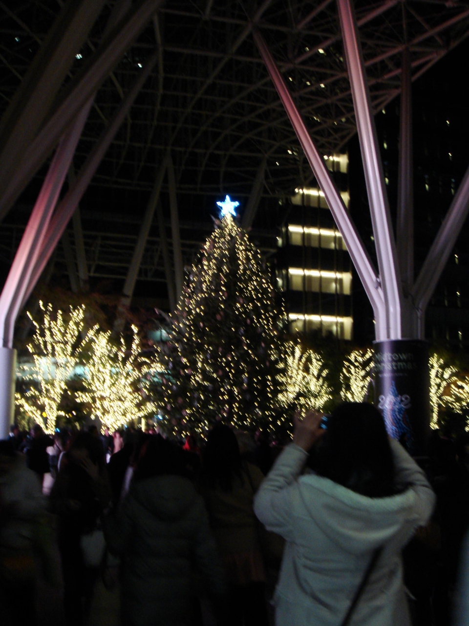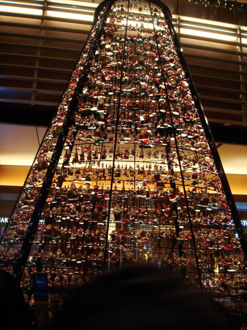 東京ミッドタウンへは、地下鉄の駅から、地上へ出ることなく、暑いくらいの暖房が利いた地下通路を歩くこと、数分。サンタツリーを見ながら、スターライトガーデンへ。周りの木々もきれいに着飾られ、青い光がさまざまに変化してきれいでした。キャノピースクエアには、6メートルのクリスマスツリー。わらざいくでできた、「ヒンメリ」で飾り付けられた、シンプルなツリーがあります。一度は見てみたかったので、感激でした