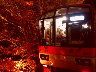特にお薦めなのが紅葉のトンネルのライトアップです。叡山鉄道で市街地から貴船口に向かう途中にあります。ここを通りかかるときは車内が暗くなりとても幻想的になります。