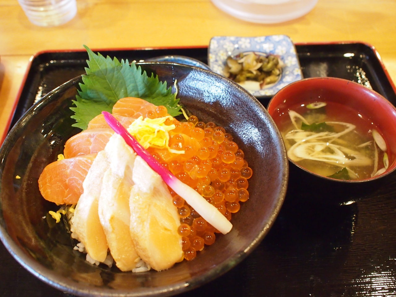 境港に行ったら新鮮な海鮮丼を食べたい!と思い色々と調べていました。 ここに行く前日に行った店がちょっと残念な感じだったので、あまり期待しない方が良いのか?!とも思ったのですが、他の海鮮丼を扱う店ではあまり見かけなかった海鮮親子丼(サーモンといくら)というメニューに惹かれて入りました。