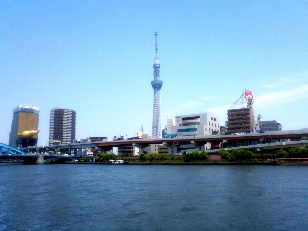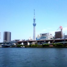 写真は、浅草付近の隅田川沿いから見た、東京スカイツリー