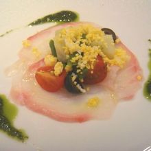 前菜は、友人が帆立のエスカルゴ風とスープ。