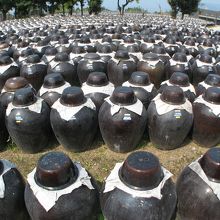 スタッフの方が丁寧に“壷畑”を案内・説明してくれました。青い空の下に整然と並ぶ数p千の壷は見ごたえがありました。帰りに、お土産としてブルーベリー酢2800円とリンゴ酢2500円を購入しました。
